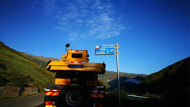 快到晚饭的时候,一辆青海牌照的大货车,载着一辆推土车,路过。