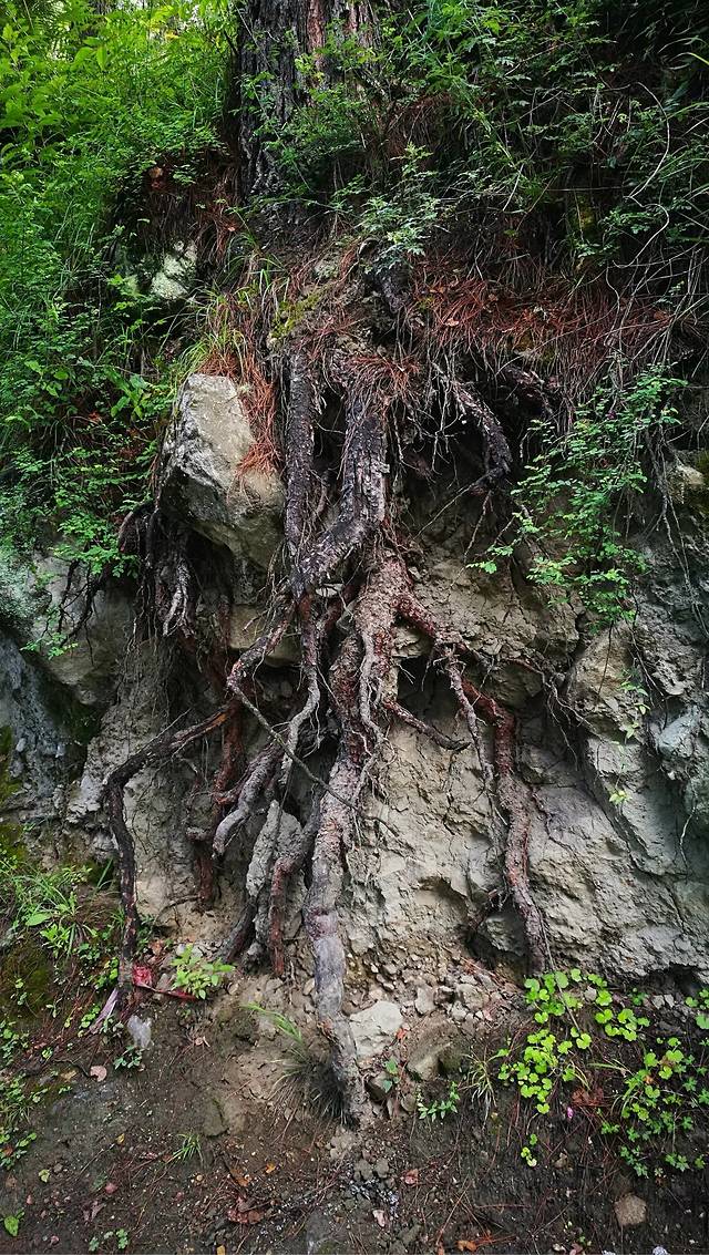 这里滑坡还是很厉害的,下一次雨估计就能下来不少土方。