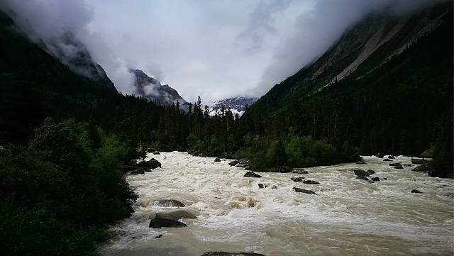 冰川融水流入然乌湖,然后再流向帕隆藏布。
