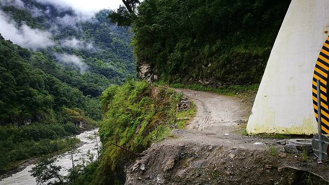 一路上还是人烟稀少,基本就我一个人,就当心的就是两侧的山体,怕有落石什么的。