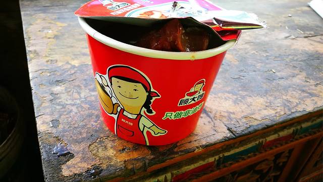 原本是想让老板下份面条的,不过同住的汽油们都说吃泡面吧,所以我也就吃了一盒泡面,然后上路。