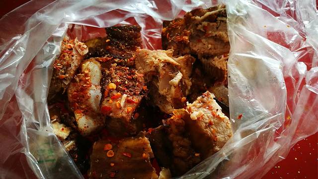 晚饭我经不起诱惑,买了一些烤猪排骨,结果,真的不好吃。