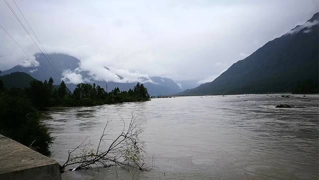 过了这里,原来相对平静的然乌湖水,就变成了奔腾的帕隆藏布江水。