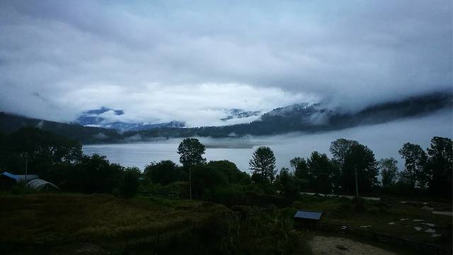 清晨的然乌,烟雾缭绕,像极了仙境。