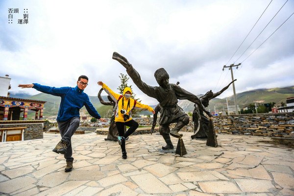 小伙伴在街头雕像旁模仿藏族同胞跳起了锅庄舞。一场灾难几乎摧毁了这里所有的一切。重建后的玉树以她“凤凰涅槃浴火重生”的姿态再次向世人呈现出更加美丽的面貌。