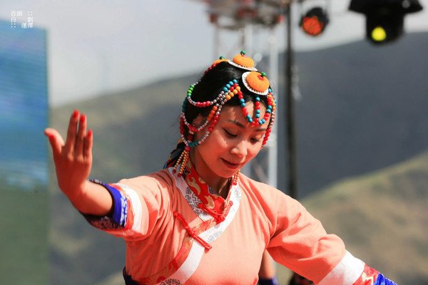 舞者们翩翩起舞,与生俱来的能歌善舞是将藏族人民那种欢乐、祥和、热情、豪迈的民情、民风展现的淋漓尽致。