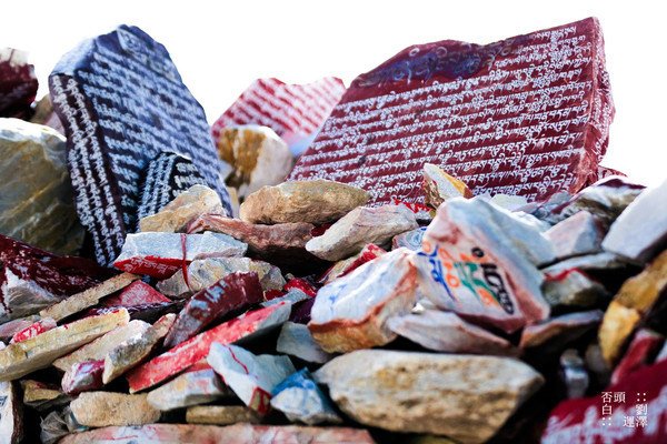 第一次接触到玛尼石堆是之前环青海湖的路上,看到湖旁有一大片石头堆砌起来的大大小小石堆,询问当地人才知道那是藏民用以祈福祭祀的玛尼石。当时觉得特别壮观,而今来到玉树嘉那玛尼石经城才真觉什么叫做壮观。