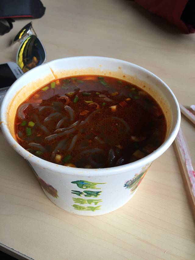 服务区的酸辣粉,15元/份,卖相一般,好在,味道还不错。