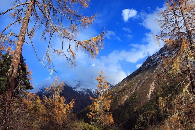 从这里望过去,可以看到四姑娘山上已经白雪皑皑。