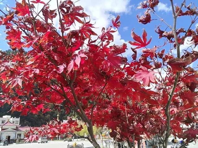旁边偶尔的一树红枫,也足够吸引住你的眼球。