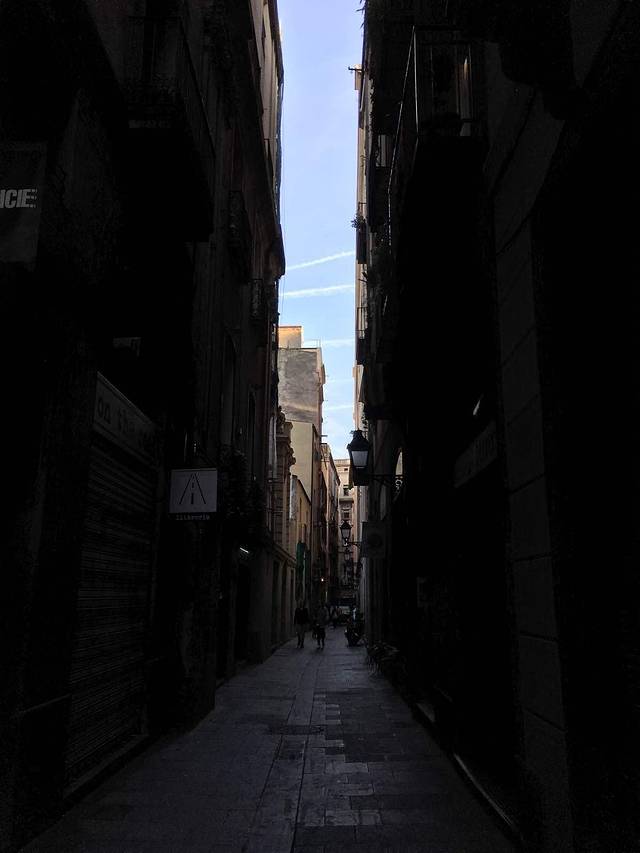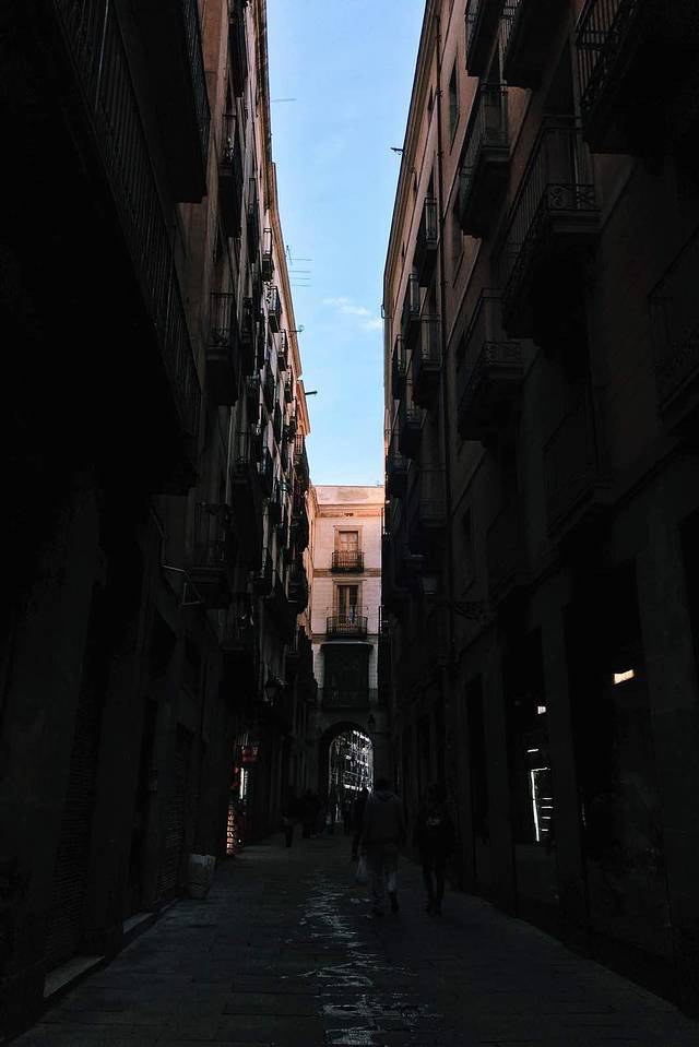 離開蘭布拉大道,轉進一個小胡同,遠遠看到一扇拱門。穿過拱門,別有洞天。