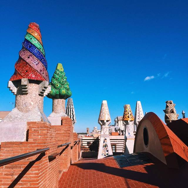 Finca Güell建築物裡面基本是空的,庭院感覺沒有被很好的照料,雜草叢生。房頂的煙囪雖然遠看很可愛,但不能上去,所以其實不用買門票,在外面也可以看到所有有趣的設計元素。門票四歐元。