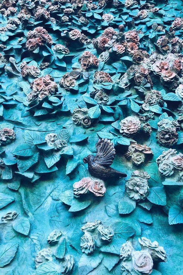 門房和馬厩之間鍛造鐵門上的雕塑龍是整個建築的亮點,做工精細栩栩如生,站在前面拍照還被尖尖的爪子扎了一下。這是1885年在高迪設計基礎上由Vallet I Pique的工廠製造的。