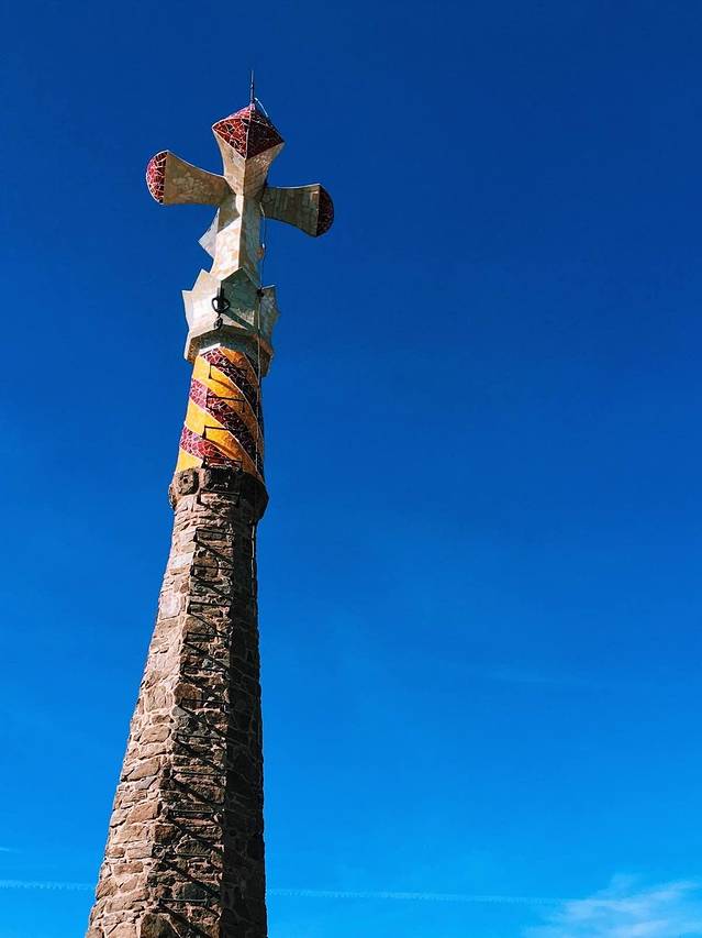 塔頂的裝飾是十字架和馬丁一世的皇冠,下面紅黃相間的是加泰羅尼亞旗幟的顏色。