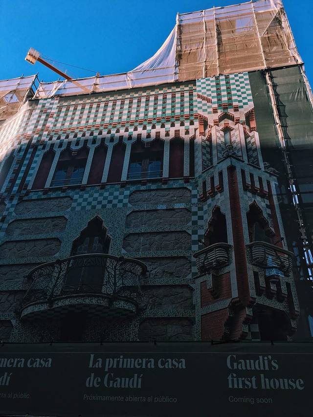 從古埃爾公園一鼓作氣走過來,結果發現正在維修……只能從外面蓋住房子的印刷布大概看看這個建築本來的面目。
