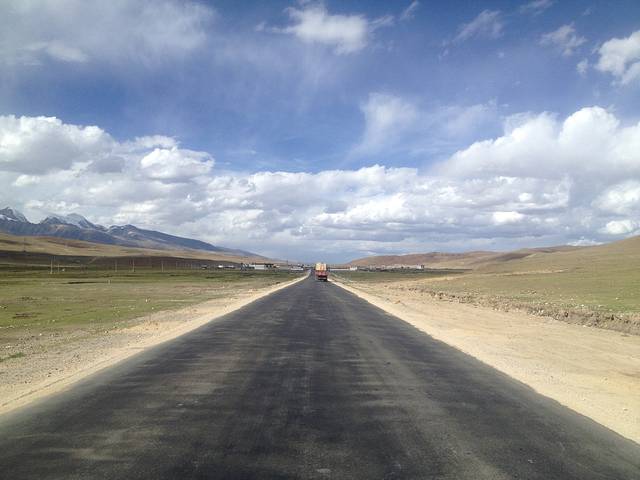 跟静哥道别后,我们就剩下五人一车,独自出发了。走青藏线慢慢回程了。去往纳木措的路上,非常好走很多路都是笔直笔直的。