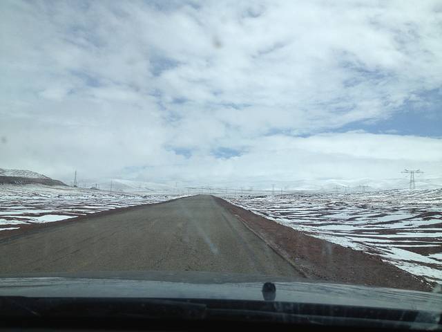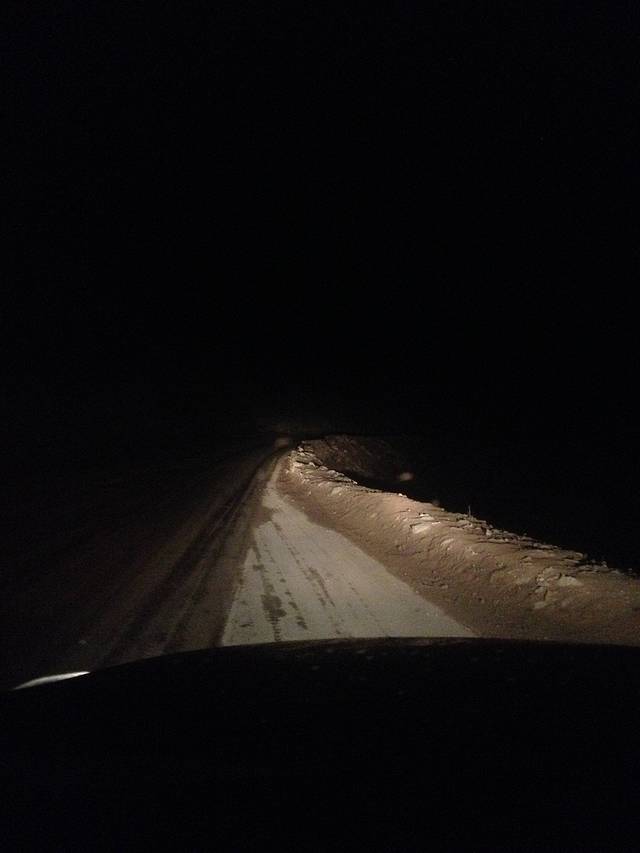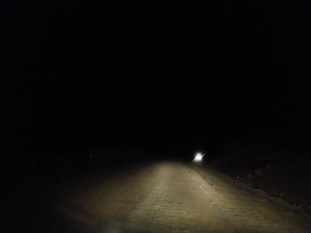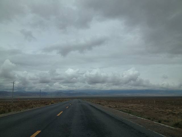 路非常的笔直,太阳没出来的原故,外面感觉风很大, 上个厕所屁股都冷得不行了,开到晚上十点多不想赶路到西宁,我们就随便找了个小镇住下来了,条件一般,不过能洗澡大家就很满足了;