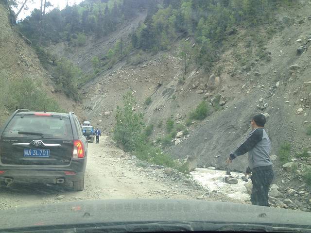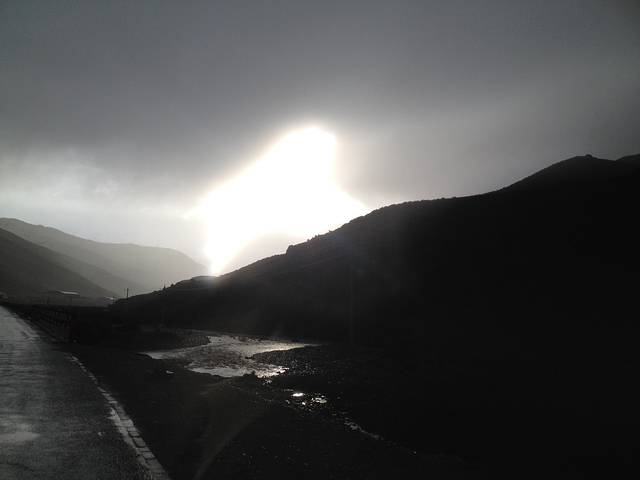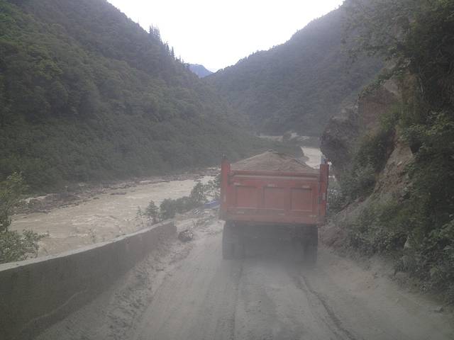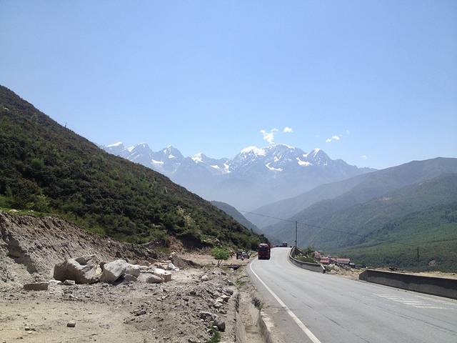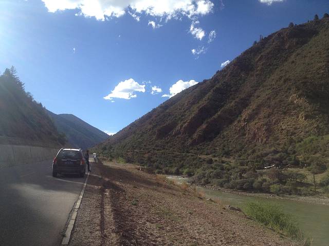 路通了后,我们沿路经过天全县,看着旁边的山确实有种荒凉的感脚,也就从今天开始一直到青藏线,我们都是在山里行驶