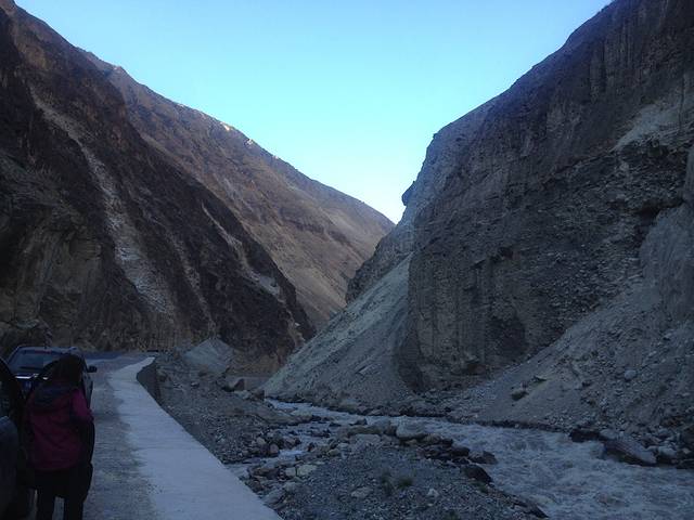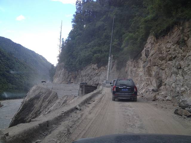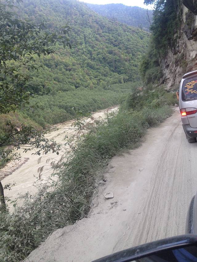 接下来开始体会到路途的凶险了,经过一段在维修的路时,吖的轮子就贴岸边的