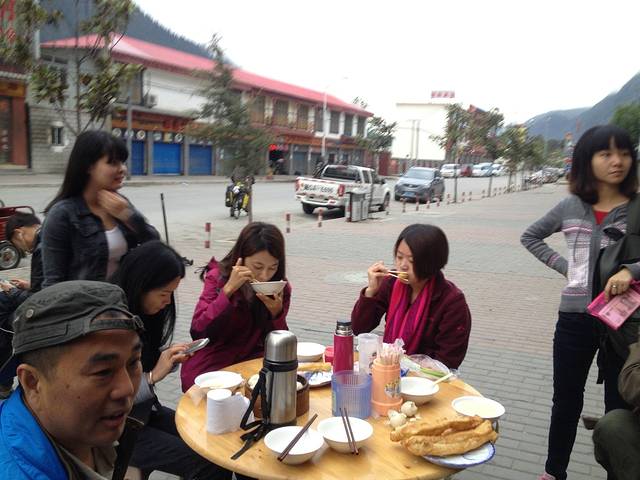 经过一晚的休整,大家早上起来良好,出门吃早餐去了;在开车出院子时,又被拦下来说停车费了,昨天本来说好房费包含停车费,不过后来二位美女老板娘下来退给我们了;蛮友好的还一个劲说不好意思,说到这,关于停车费可真有得说;一路上只要看到当地人,或者有空旷的地方就可能有人过来说停车费,而且是没有理由的,有很多时间就是山里路边而已;唉,10块20的是小事,可特坏心情啊!