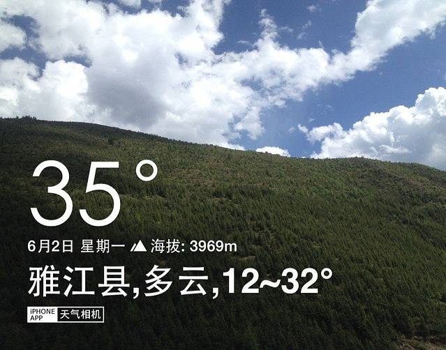 阴天,温度适中,我们一直在车上,就算下去玩,也就一会的时间,所以感觉不到外面气温的变化