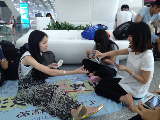 深圳-成都 5月31号终于是盼到了,大家纷纷深圳宝安机场集合,由于林生跟彭姑娘晚几天定的票,跟我们不是同一航班,比我们先到;最先到深圳机场的大神77既然提前二三个小时就到了,其他的也按部就班的准时到了,然尔航班晚点不得不让我们逗留下了,既来之,则安之,我们发扬了吊丝精神,席地而坐的打起地主来了......