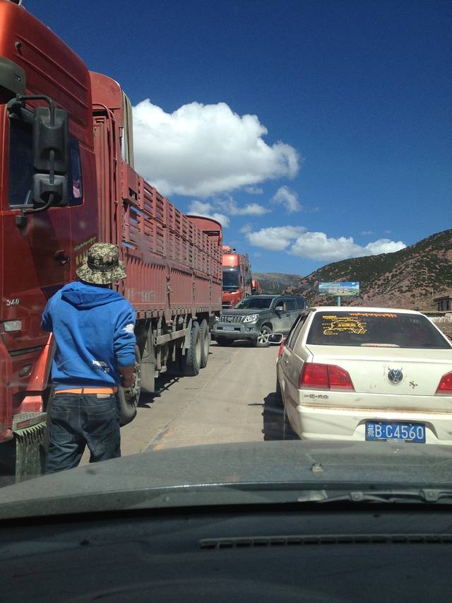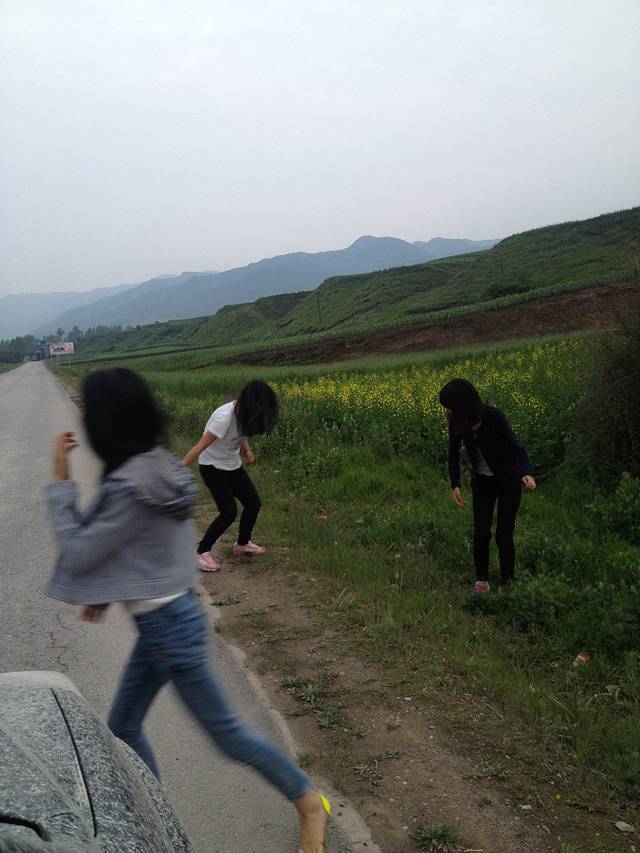 由于前方出车祸了,堵了大概有半个多小时吧,我们下车玩起来了