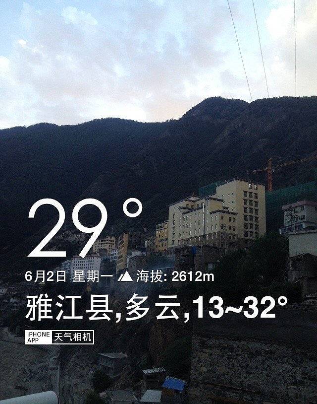由于昨晚没睡好,今天我们下午五点就没再往前开了,打算住雅江,也因为这里海拔稍低些;进入县城还不错就是路太窄了,我们找到家宾馆就住上了,不是很大但条件还是很不错都有洗衣机,也有热水澡洗的,放下行李我们就去吃饭,又是川菜;今天77已经高反的厉害,睡了先;