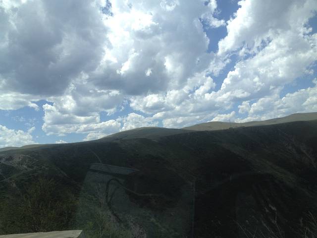 今天算是一天都在路上了,路边全是大山,颜色也变黄了