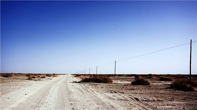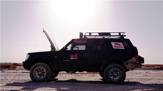 初入罗布泊,一路都是这样的碎石破路!(两年前SON第一次来这的时候,在沙漠陷车了,在绝望的时候碰到当地的维族小伙,在他的帮忙下终于脱困,所以这次我们买了些米面油,打算这次去答谢)