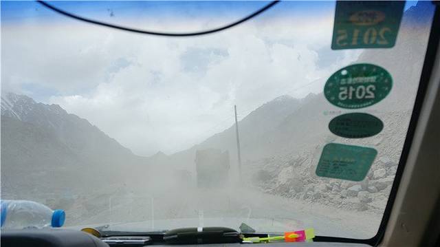 从喀什到塔县,正在修路,路况非常不好,跟在大车后面,一路吃灰,最坑爹的是我们去喀什的路上出的事故把雨刮给弄坏了,真是一路摸爬滚打的走完了这段破路!