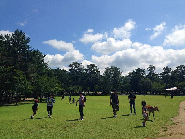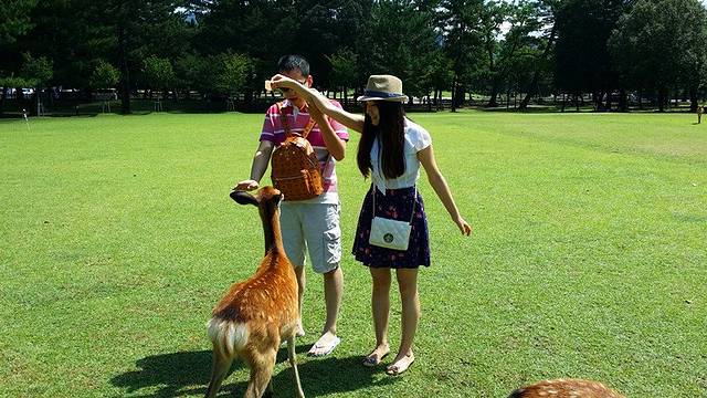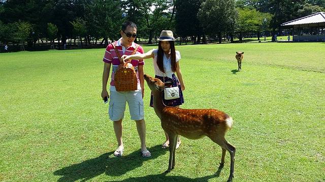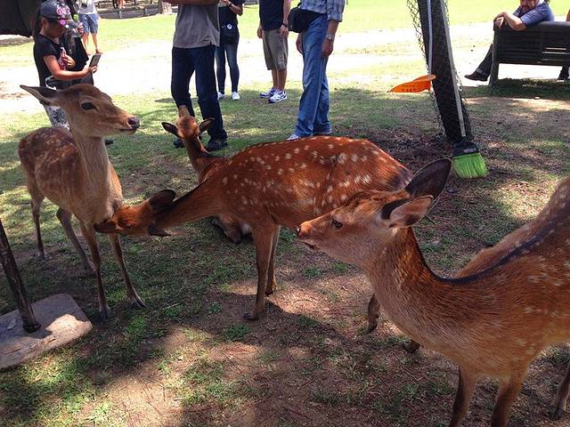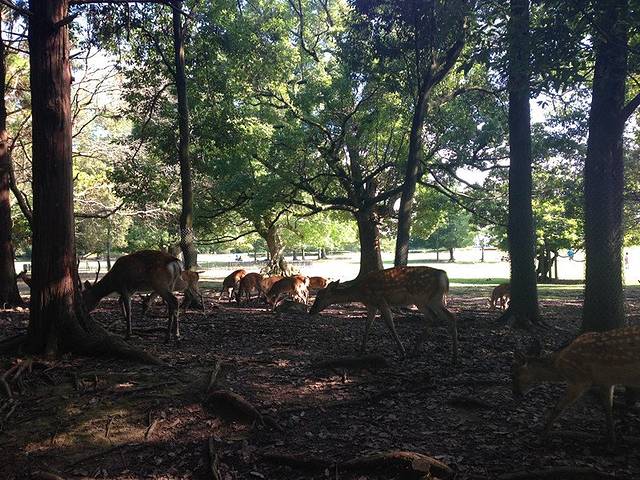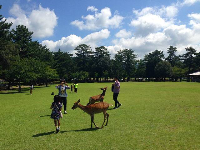看到好多鹿 尤其是贩卖鹿仙贝小摊子的附近 只要有人买了鹿仙贝 小鹿就把人家盯上了哈哈