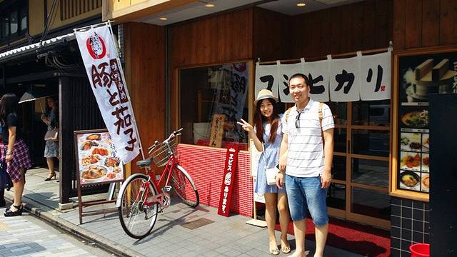 在酒店check in之后 放下行李稍作休息 就出发啦 下午的行程就是清水寺一带 酒店在四条西洞院附近 走到车站2分钟 当时正值中午11点多 太阳超级大 晒的热死了 正巧车站旁就有一家小餐厅 就叫 西洞院食堂~~ 看了门口的餐单 觉得还不错 几个人一商量 索性先吃午饭好啦