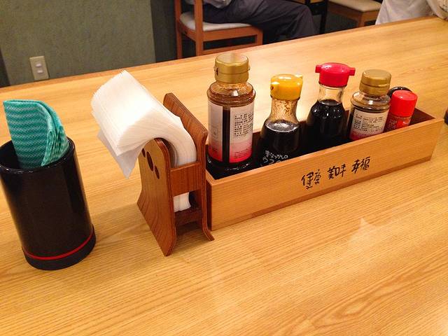 一蘭可以根据自己的喜好选择汤的浓度 要不要加蒜加葱 叉烧肉 秘制酱汁 还有面的软硬度 第一次点一般建议都按照正常来点 汤浓而不腻 一点点红色的秘制酱汁有一点点辣味中和了汤的咸味 司怪爱``
