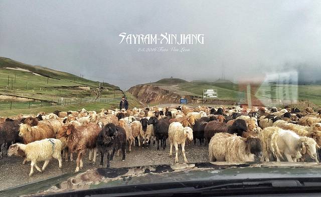 迎头遇上一大驼羊。。。来之前看游记说这里是牛羊的世界,人类只是客人,不要对它们太急躁,按喇叭什么的,容易使羊群受惊。可我的亲身感受是,这帮货也太霸道了,你正常按喇叭对他们根本没影响,如果牧羊人不驱赶,你怎么按喇叭他们也不动地方,就差爬上车了。于是乎我们就在原地按了20分钟喇叭,直到牧羊人来把它们赶走了。