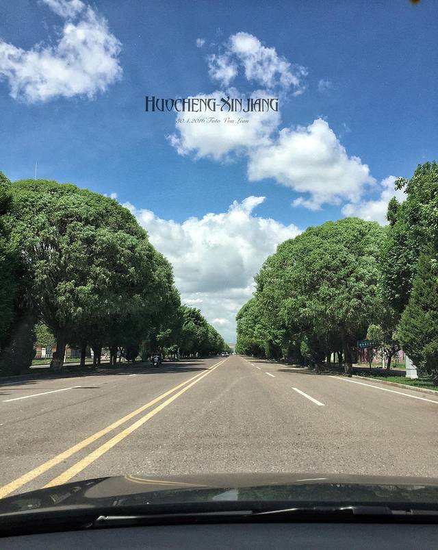 霍城县的城市布局很有意思,整个县城的中心就是依附于一条主干道的两边修建的,而难得的是这条主干道修的路况非常好,也很干净,两旁更是被两串从头到尾的不知是什么的数贯穿着。甚至于走着走着都忘了这是一个县城。