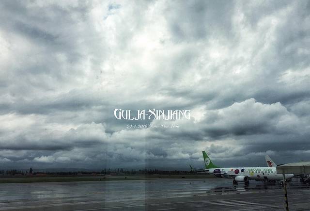 下午4点准时降落于伊宁机场,中间需要在克拉玛依经停大约一个小时。新疆全境与内地有着两小时时差,所以北京时间四点即为新疆时间2点。在新疆随处可见不同的时间设定,大部分本地人嘴里说的时间都是新疆时间。所以到了新疆之后每一次提及时间的时候都务必要核实,说的是北京时间还是新疆时间。5月份新疆日落时间约为北京时间十点半前后。