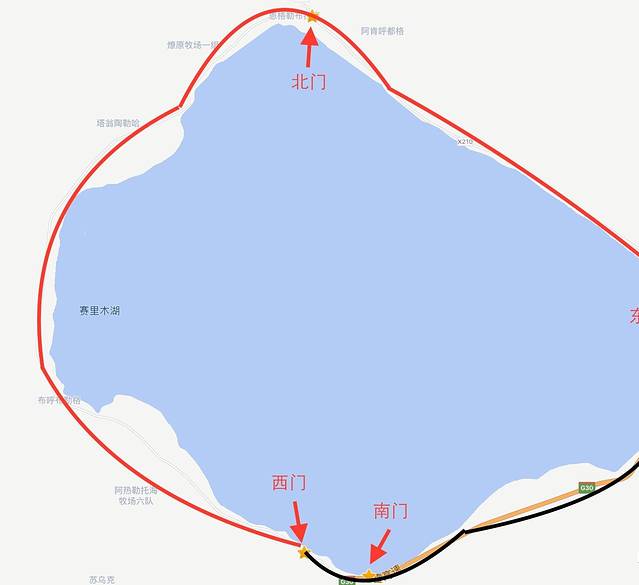 按照头一天推荐的路线,今天我们由赛里木湖公园西门出发,沿路向东南行驶至y形路口右转,之后一直沿路走出果子沟回到g30公路。