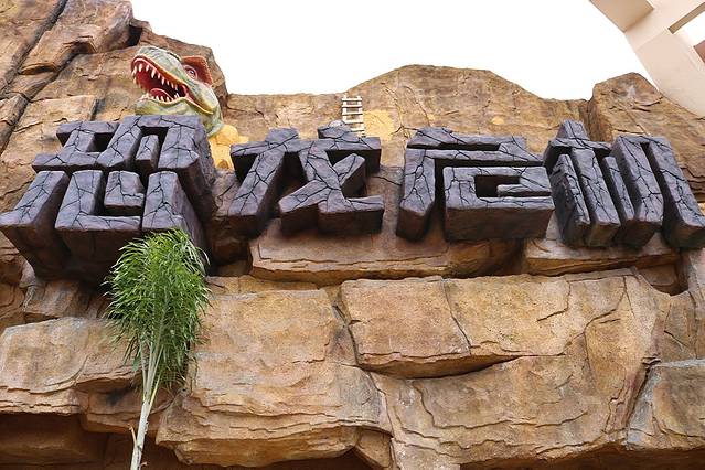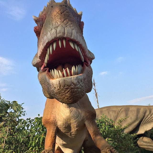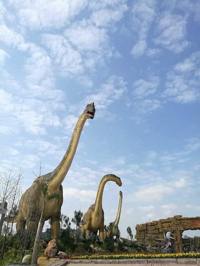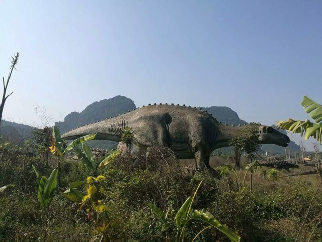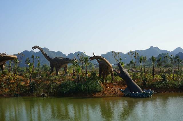 门口旁边的三只大恐龙,趁着人群都没在这边,小哥我赶紧拍下来。有人靠近的时候就会动起来,而且还会咆哮,似乎是在说别靠近我,小心我踩扁你哦!园区里有导游介绍说着三只恐龙是有来历的哦,是根据扶绥县出土的恐龙化石命名的,也是根据出土的化石塑造的模型,