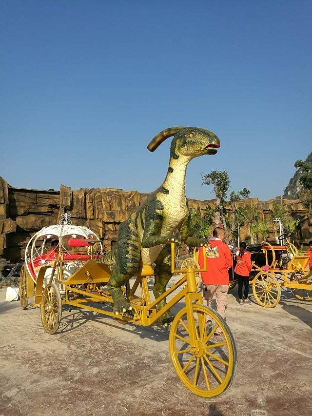 从大门进来后就有几辆这样的观光车,这些车上的恐龙是会叫的哦,也会骑车送我们光园区