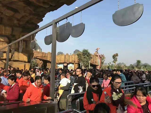 这是9:25分的公园门口,游客慢慢的多了起来,新开的一个园区第一天就有那么多的游客,也是可以喔。现在已经是摩肩接踵,我问了下工作人员是什么情况,为什么游客都聚集在门口不让进?他跟我介绍说:9:30才可以入园。