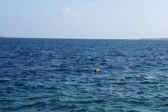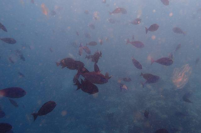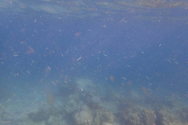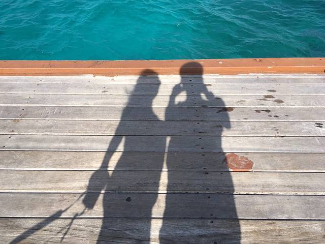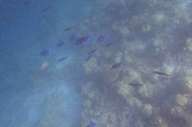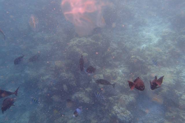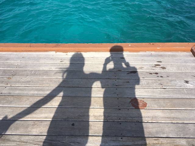 今天上午用餐完毕后,老婆大人决定沿着我们水屋外的海沟浮潜探索一番,之前在沙屋和码头处都没看到什么像样的鱼群;至于我么……实在是泳技欠佳,半个旱鸭子,所以只好在🏖上帮老婆大人摇旗呐喊、鼓劲助威了~
