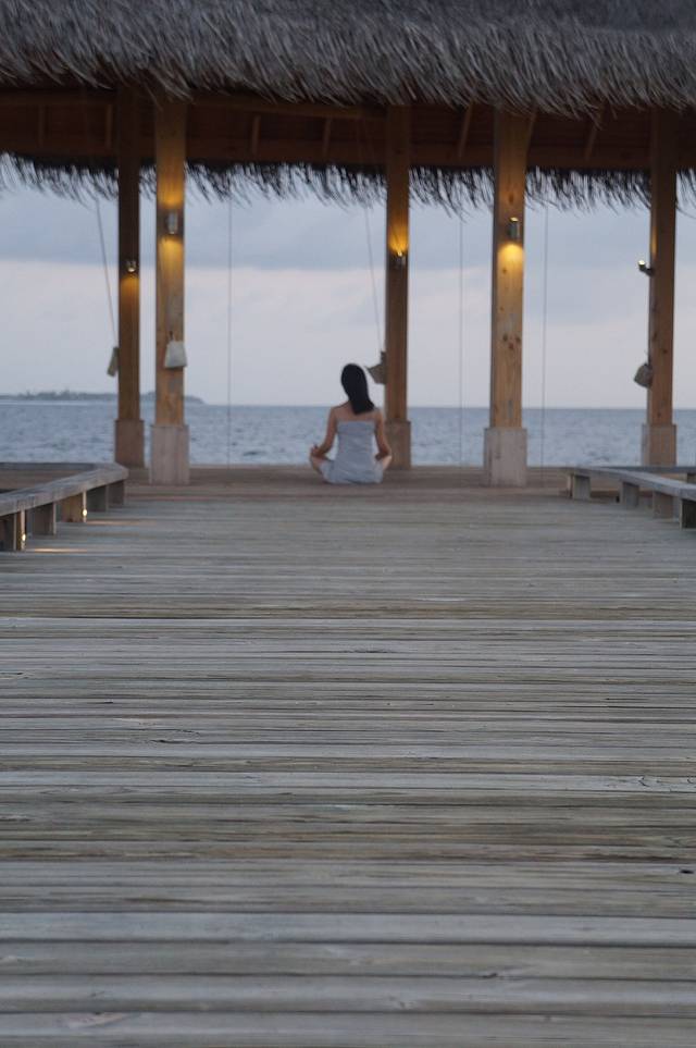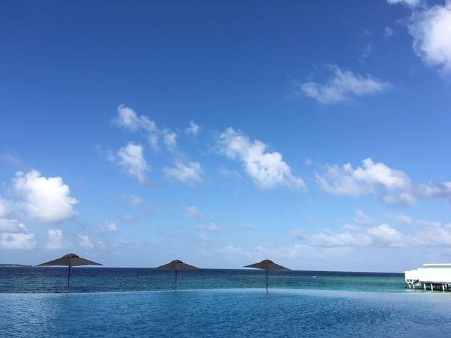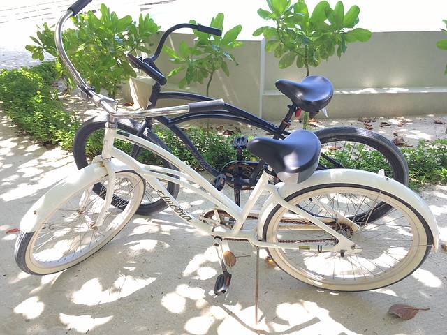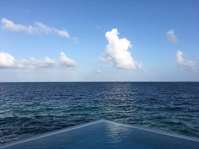 接下来的一天没有安排额外的活动,睡到自然醒起床,骑着“黑白双煞”慢悠悠滴晃去早餐,无边泳池畔消食、发呆、看海;椰林间笃行,累了就爬上吊床假寐片刻;瑜伽亭坐看夕阳红霞满天;晚上就在水屋栈桥和露台仰望银河、满天星斗