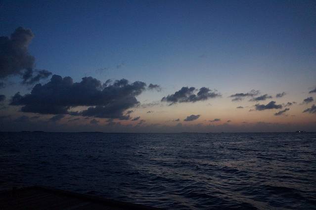 由于受时差的影响,马累时间凌晨4点多就醒了(北京时间7点多),外头看着还是漆黑一片,在床上眼对眼硬憋到5点,实在躺不住了,干脆起床去看日出~