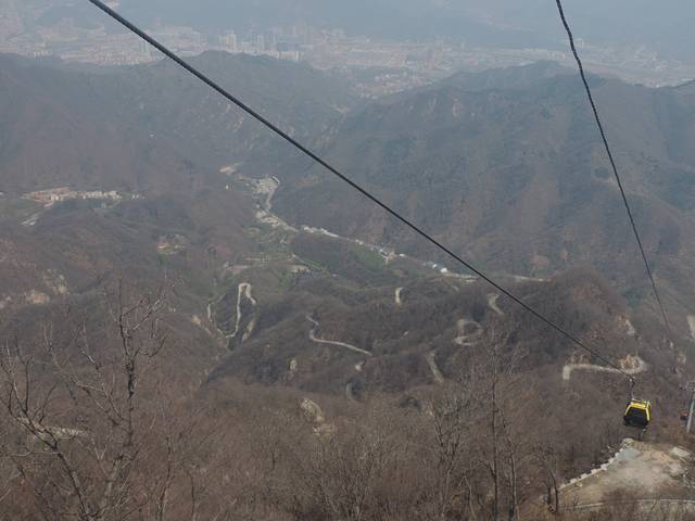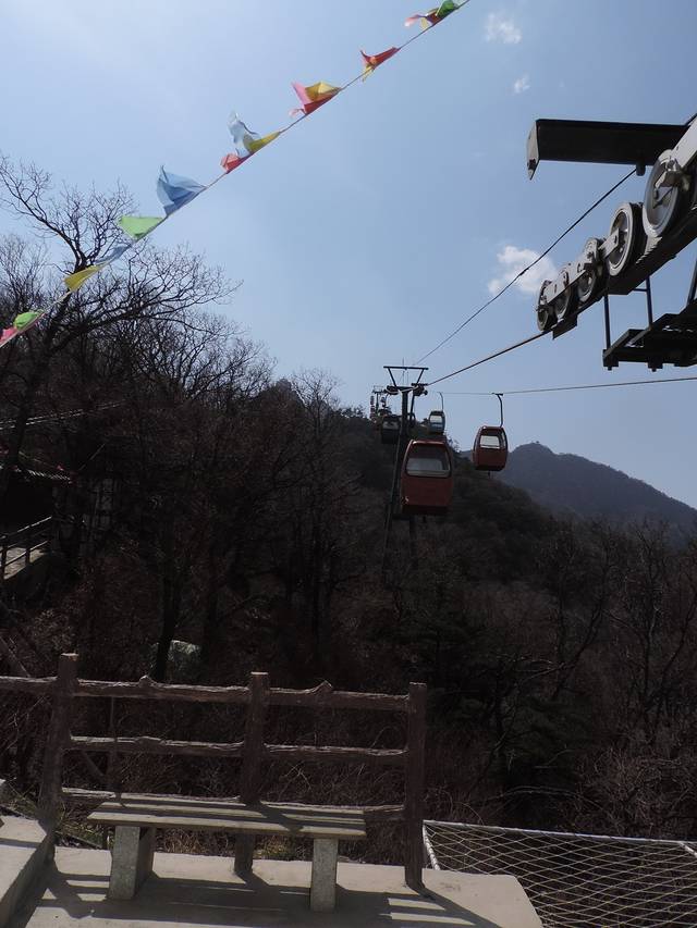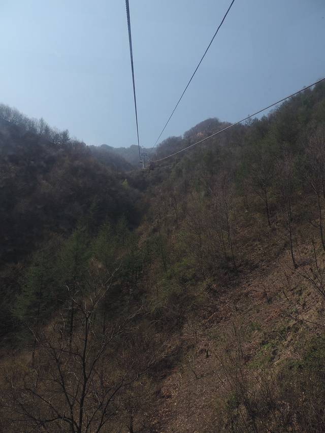 由于时间有限,所以采用了“步行+索道”的方式。在灵观殿与山腰的中天门之间,有中灵索道