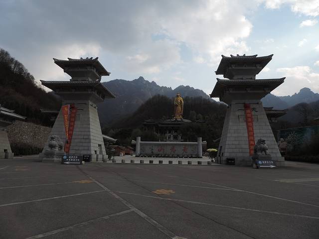 景区主门,老君宝像庄严,左为爬山入口,右为追梦谷入口