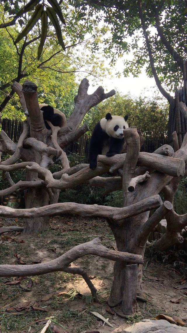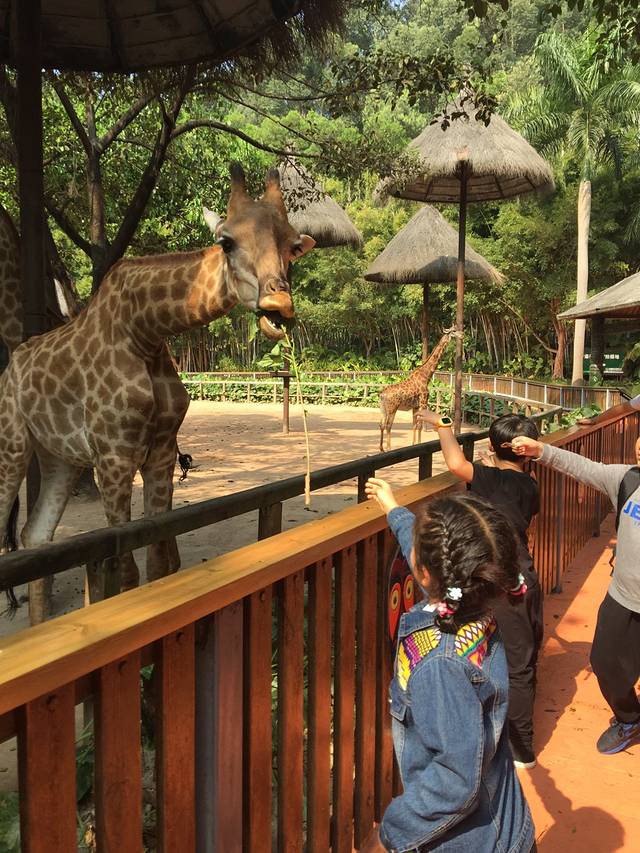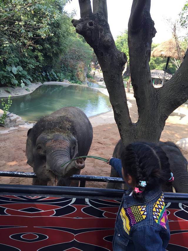 没有走侏罗纪蟒蛇和猴子那两个线路,是因为二宝吃过饭后的午睡时间到了,为了把他哄睡,我们走走停停玩玩,好不惬意。在他睡着的一个多小时我和大宝喂长颈鹿,跳竹竿舞,看考拉,见到了著名的熊猫三胞胎。那个喂长颈鹿的草20元只一根,大宝一伸手搜的迅速被长颈鹿叼走,20没了😂。后来喂大象我俩总结了经验教训,不能一下全给它,要掰成一绺一绺的,果真喂了好久耶✌🏻。