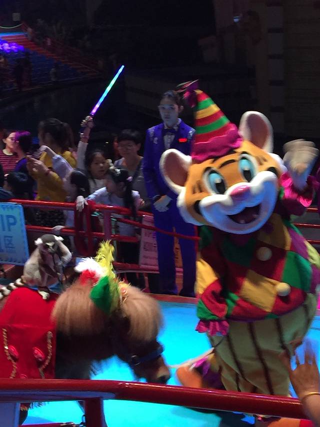 大马戏5点半开门,好多提前来排队的占到了最前面的位置,宝妈还是觉得不用那么靠前,花车巡游等好多表演是还得扭头向后看,前面动物味道大还易弄湿,总之宝妈的位置最好最满意😝,因为后来小丑互动扔玩偶居然扔到我怀里,哈哈哈还是生平头一次!😆
