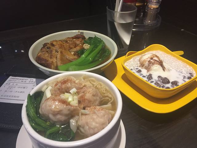 鲜虾云吞面和猪扒汤丁,外加一份红豆西米雪糕共花销79