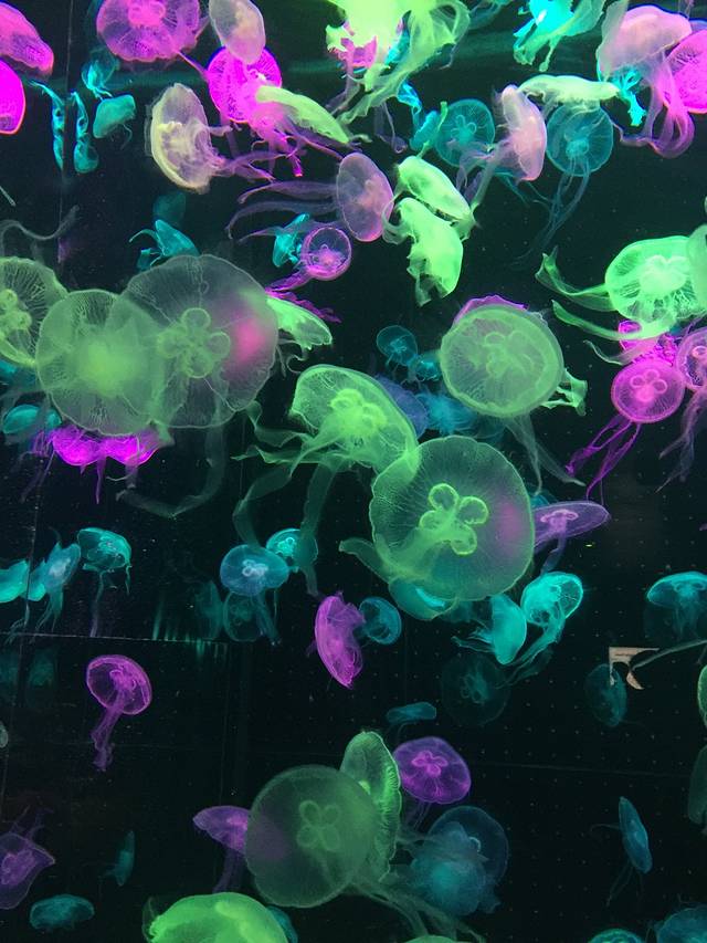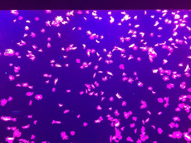 其实是同一群水母 变换的是灯光